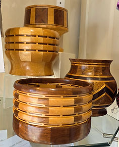 Artist James Crabb brings an eclectic assortment of work to Eclectics Gallery, including dramatic mobiles for hanging or for your desktop, beautiful turned wood vessels, curio boxes, and unique jewelry in a variety of materials including wood, titanium, brass, and resin.